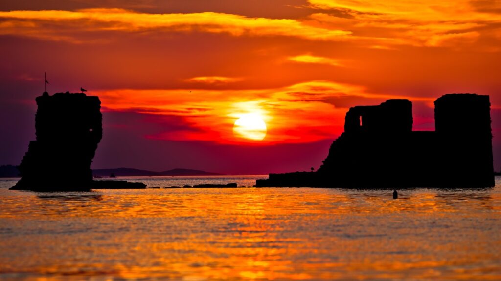 Interessanterweise wurde sie 1470 dank Erzbischof Matheo Valaresso von Zadar erbaut. Es handelte sich um einen rechteckigen zweistöckigen Palast mit einem monumentalen Obergeschoss. Außerdem wurde sie während des Krieges zur Verteidigung von Sukošan gegen türkische Angriffe genutzt. Heute ist er ein Symbol. Die Ruinen des Palastes sind bei Sonnenuntergang besonders schön, wenn sie vor dem Hintergrund der untergehenden Sonne einen einzigartigen Anblick bieten. Es ist erwähnenswert, dass Sie die Ruinen im Sommer mit dem Boot erreichen können.